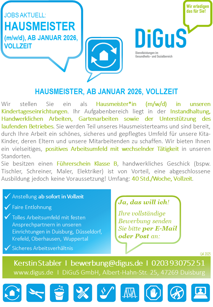 HAUSMEISTER:IN (m/w/d), VOLLZEIT, AB JANUAR 2026